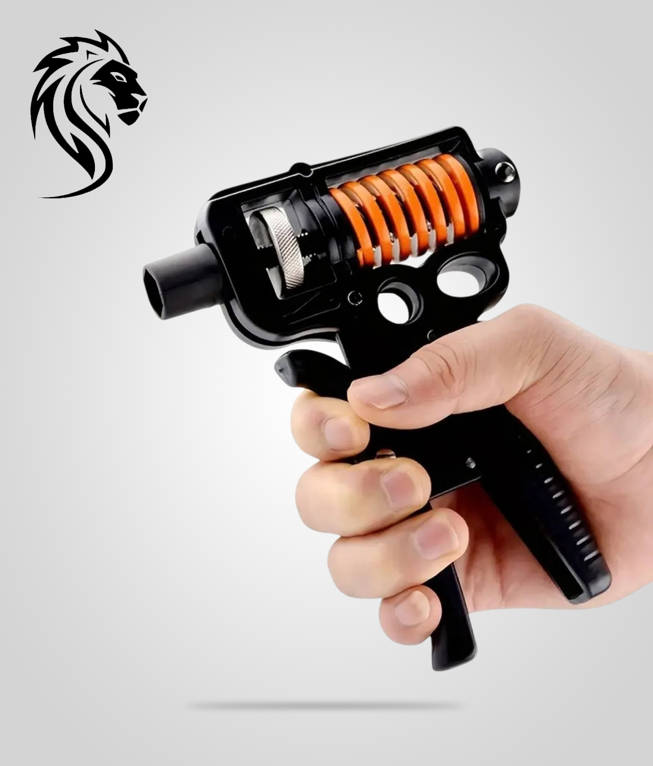 It has a high quality steel spring, curved grip, adjustable from 5kg to 200kg resistance